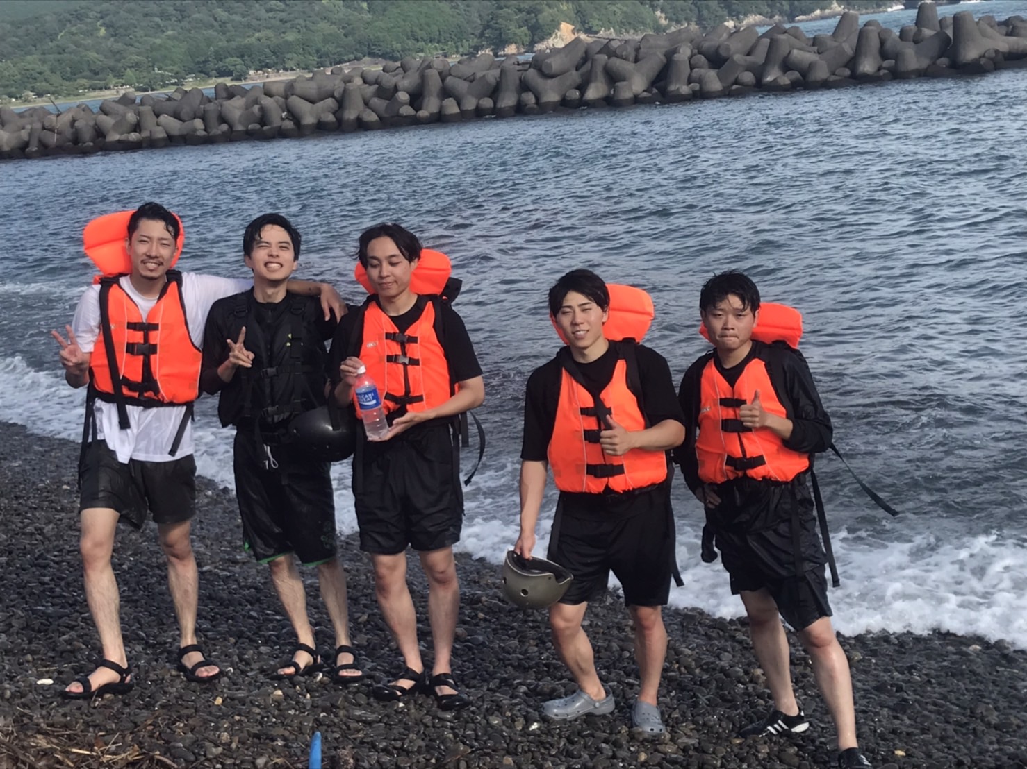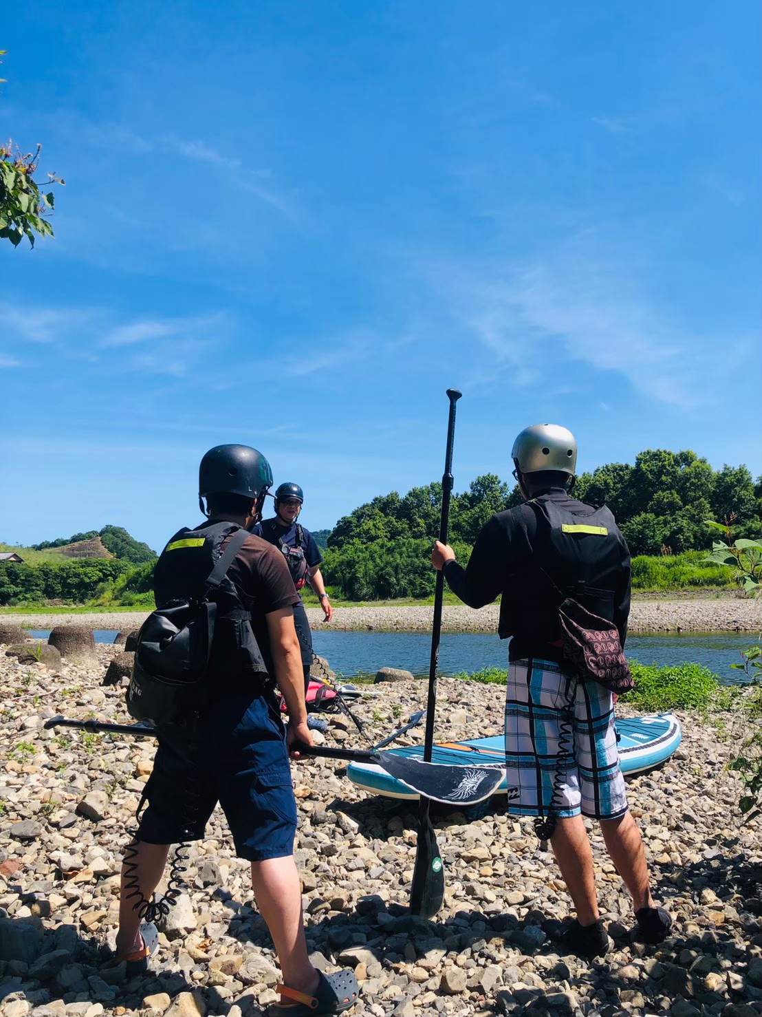 川へ移動し、漕ぎ方の練習をしてスタートします。赤羽川から海までの約2キロを漕ぎ進めます。